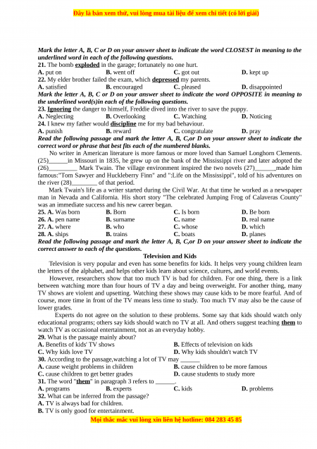 Đây là bản xem thử, vui lòng mua tài liệu để xem chi tiết (có lời giải)