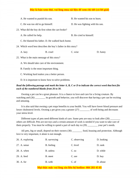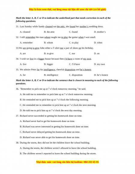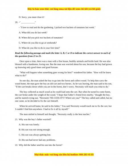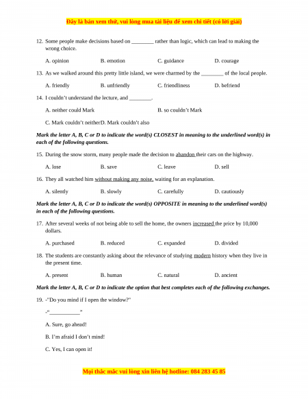 Đây là bản xem thử, vui lòng mua tài liệu để xem chi tiết (có lời giải)