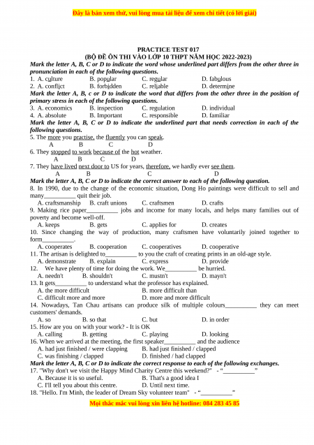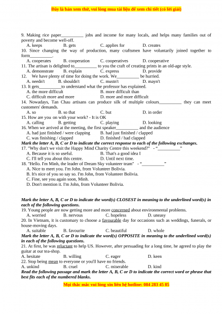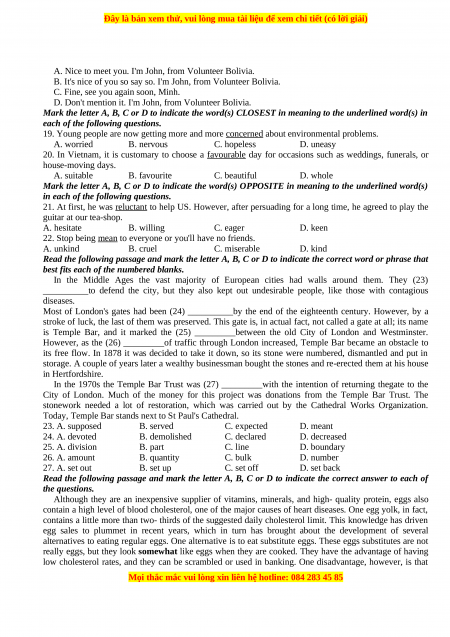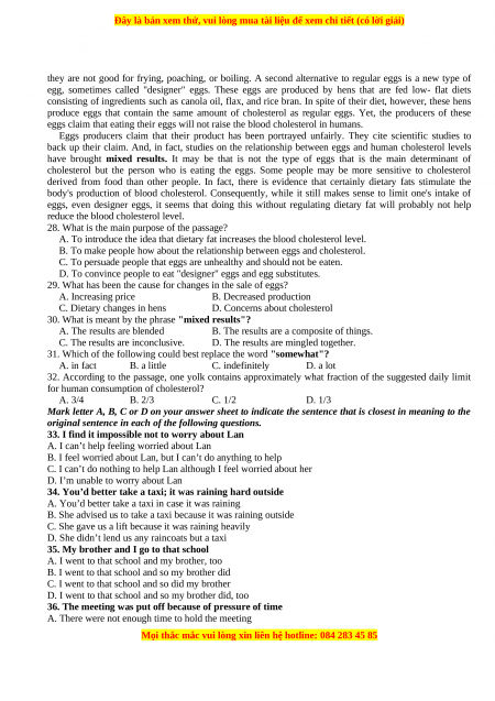 Đây là bản xem thử, vui lòng mua tài liệu để xem chi tiết (có lời giải)