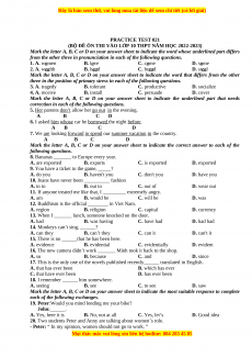 (BỘ ĐỀ ÔN THI VÀO LỚP 10 THPT NĂM HỌC 2022-2023)