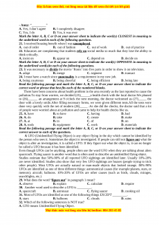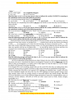 31. Most of UFOs are identified as one of the following things EXCEPT _________. A. stars B. balloons C. clouds D. rains