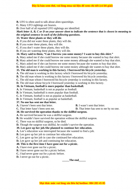 Mark letter A, B, C or D on your answer sheet to indicate the sentence that is closest in meaning to