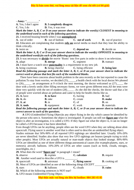 21. I received housing benefit when I was unemployed. A. out of order B. out of fashion C. out of work D. out of practice