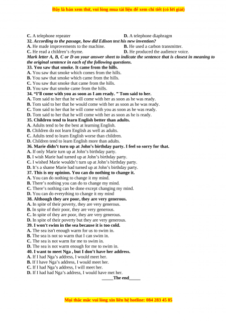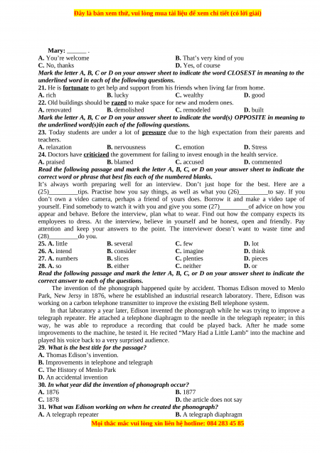 Đây là bản xem thử, vui lòng mua tài liệu để xem chi tiết (có lời giải)