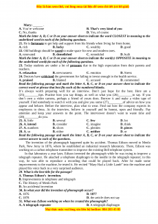Read the following passage and mark the letter A, B, C, or D on your answer sheet to indicate the