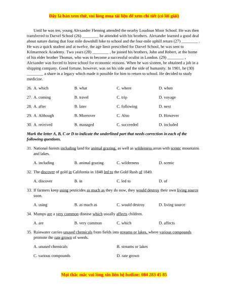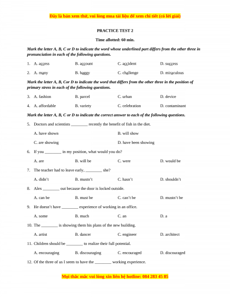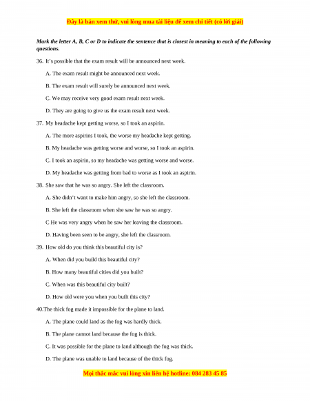 Đây là bản xem thử, vui lòng mua tài liệu để xem chi tiết (có lời giải)
