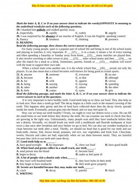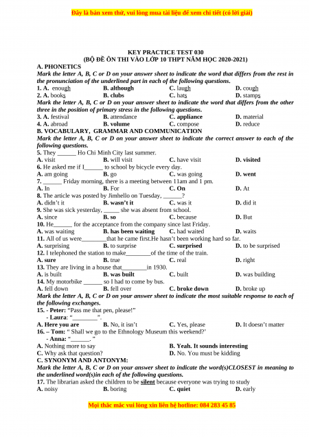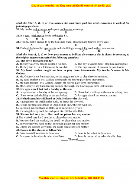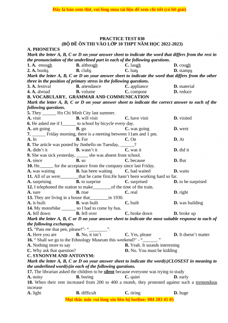 Đây là bản xem thử, vui lòng mua tài liệu để xem chi tiết (có lời giải)