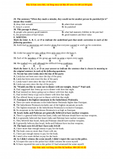 Mark the letter A, B, C or D on your answer sheet to indicate the correct answer to each of the following questions.
