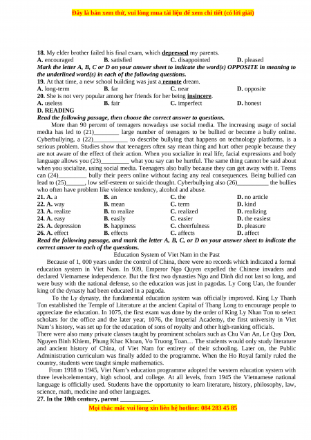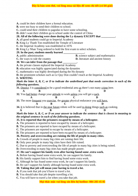 D. the prominent scholars such as Le Quy Don couldn’t teach at the Imperial Academy E. WRITING