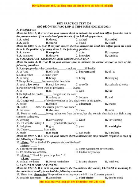 (BỘ ĐỀ ÔN THI VÀO LỚP 10 THPT NĂM HỌC 2022-2023) A. PHONETICS
