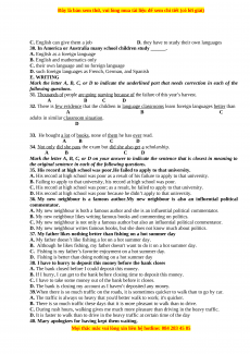 Mark the letter A, B, C, or D to indicate the underlined part that needs correction in each of the following questions.