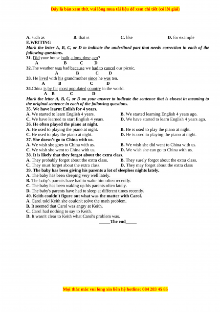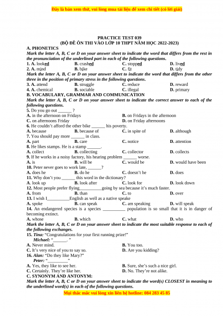 Đây là bản xem thử, vui lòng mua tài liệu để xem chi tiết (có lời giải)