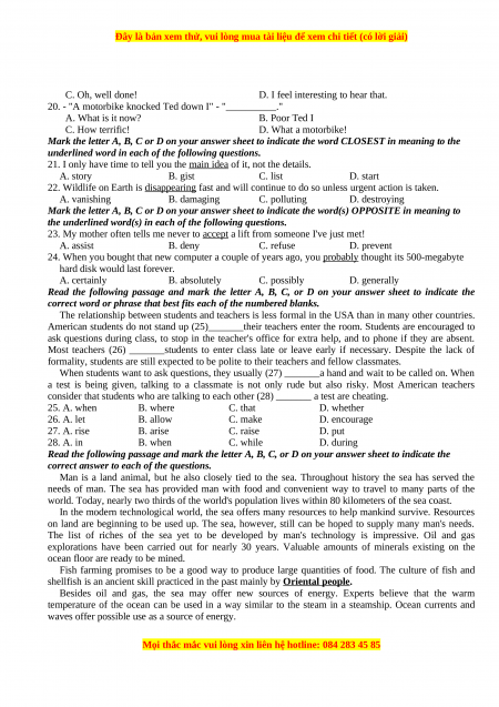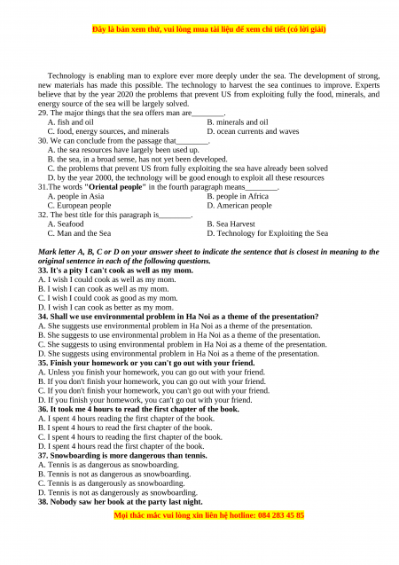 Đây là bản xem thử, vui lòng mua tài liệu để xem chi tiết (có lời giải)
