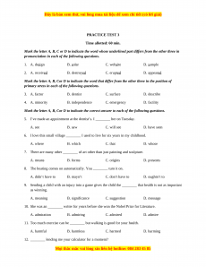 pronunciation in each of the following questions. 1. A. design B. solar C. website D. sample 2. A. received B. destroyed C. erupted D. appeared