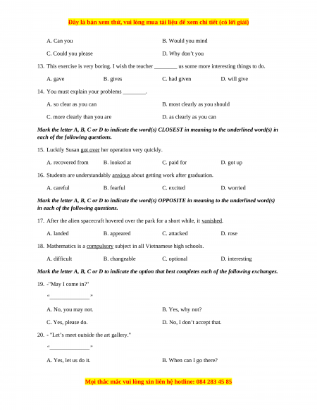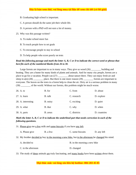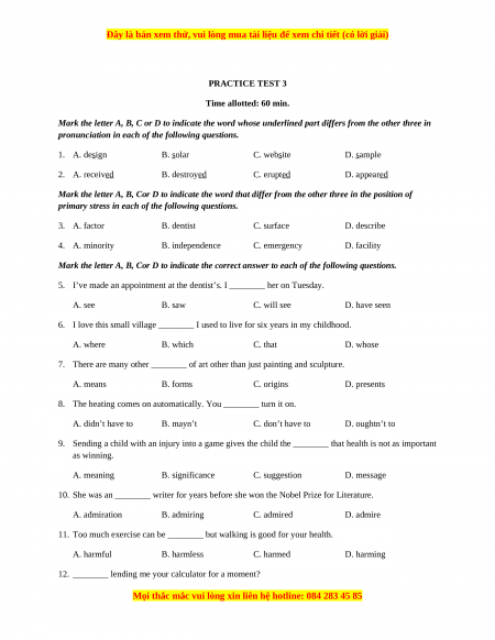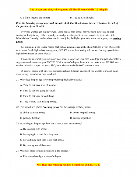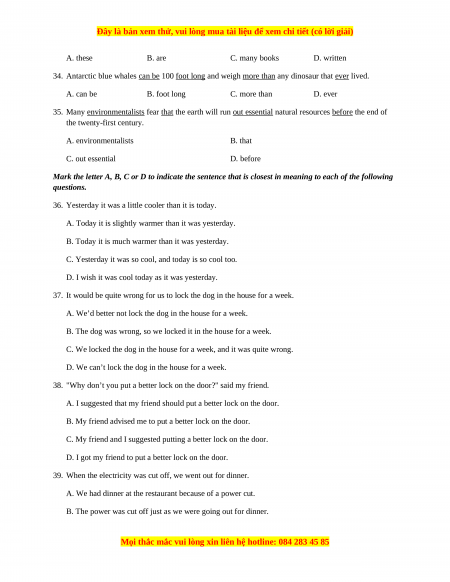 Đây là bản xem thử, vui lòng mua tài liệu để xem chi tiết (có lời giải)
