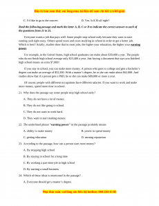 22. The underlined phrase "earning power" in the passage probably means A. ability to make money B. power to spend money C. getting education D. earning reputation