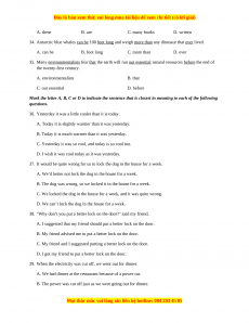 Read the following passage and mark the letter A, B, C or D to indicate the correct answer to each of