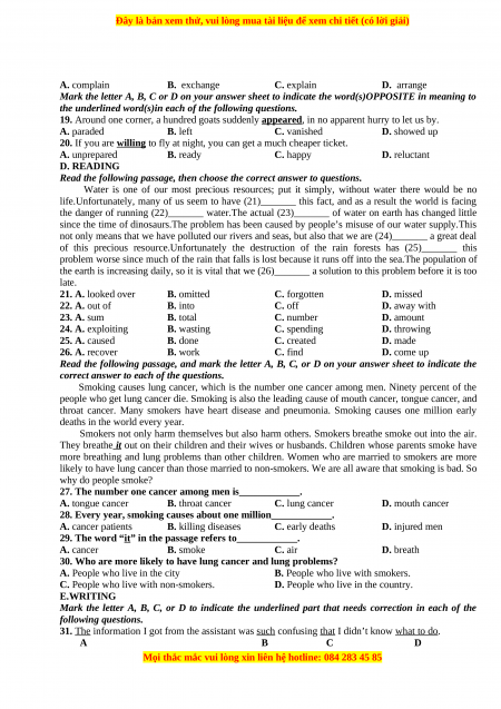 Mary: “______ . ” A. Please do B. No, thank you C. No, I can’t D. Yes, I do C. SYNONYM AND ANTONYM: