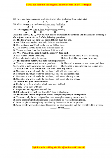32. Have you ever considered work as a teacher after graduating from university? A B C D