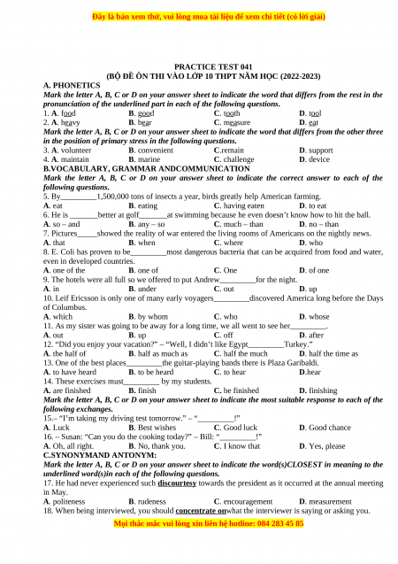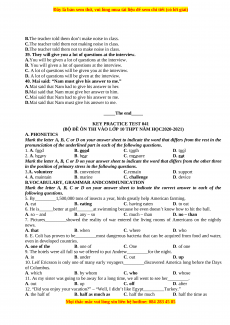 (BỘ ĐỀ ÔN THI VÀO LỚP 10 THPT NĂM HỌC (2022-2023) A. PHONETICS