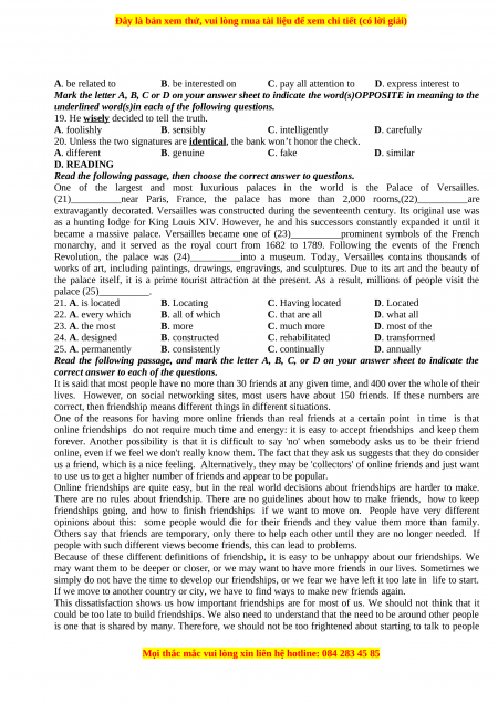 Đây là bản xem thử, vui lòng mua tài liệu để xem chi tiết (có lời giải)