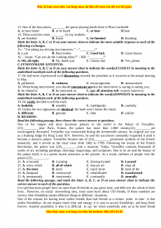 the palace itself, it is a prime tourist attraction at the present. As a result, millions of people visit the palace (25)__________. 21. A. is located B. Locating C. Having located D. Located 22. A. every which B. all of which C. that are all D. what all 23. A. the most B. more C. much more D. most of the 24. A. designed B. constructed C. rehabilitated D. transformed 25. A. permanently B. consistently C. continually D. annually