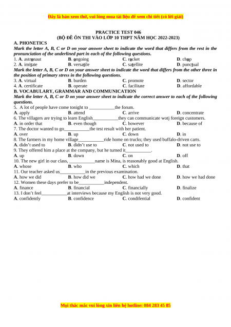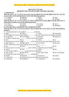 (BỘ ĐỀ ÔN THI VÀO LỚP 10 THPT NĂM HỌC 2022-2023) A. PHONETICS