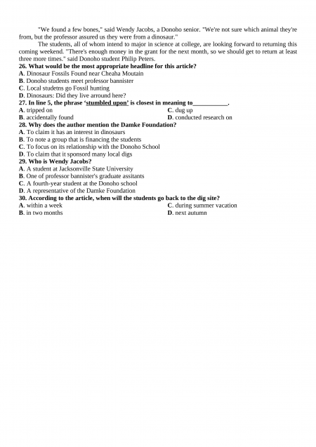 30. According to the article, when will the students go back to the dig site? A. within a week