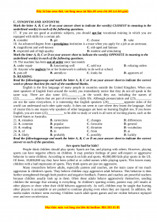 28. Which is described as the main cause of more aggressive playing? A. Adults C. New rules in sports