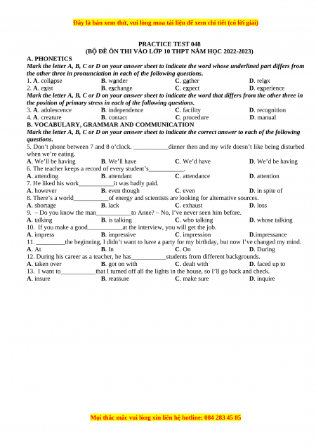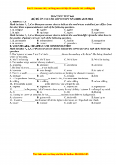 (BỘ ĐỀ ÔN THI VÀO LỚP 10 THPT NĂM HỌC 2022-2023) A. PHONETICS