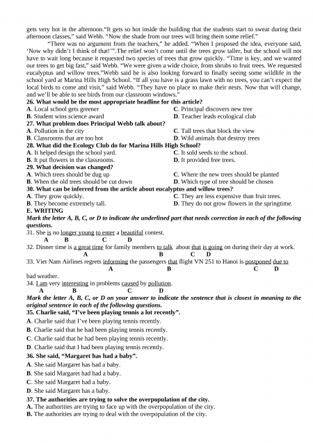 Mark the letter A, B, C or D on your answer sheet to indicate the most suitable response to complete each