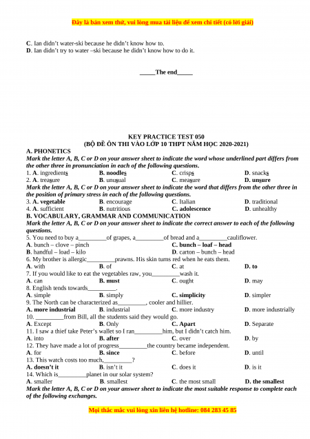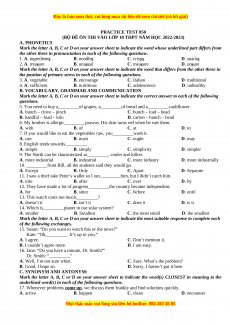 (BỘ ĐỀ ÔN THI VÀO LỚP 10 THPT NĂM HỌC 2022-2023) A. PHONETICS