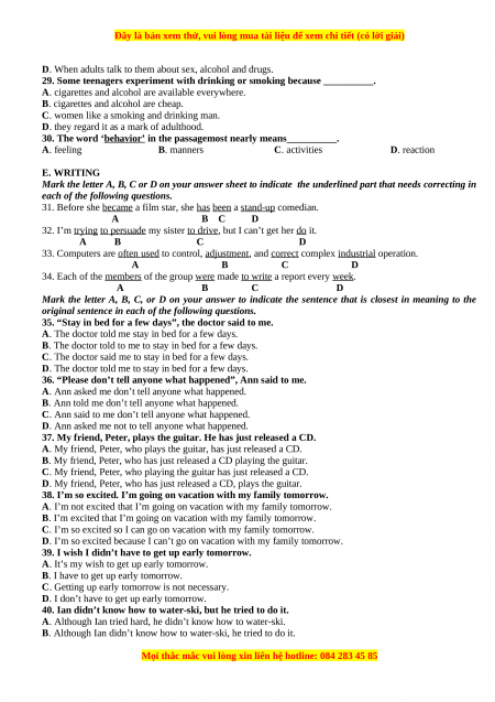 Mark the letter A, B, C or D on your answer sheet to indicate the underlined part that needs correcting in