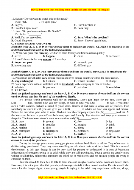 the point. The interviewer doesn’t want to waste time and (25)_________do you. 21. A. little B. several C. few D. lot 22. A. intend B. consider C. imagine D. think 23. A. number B. slice C. plenty D. bit 24. A. colleagues B. employees C. customers D. employers 25. A. so B. Either C. neither D. or