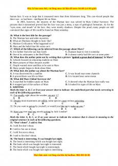 Read the followingpassage and mark the letter A, B, C or D on your answer sheet to indicate the correct