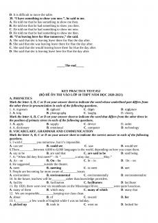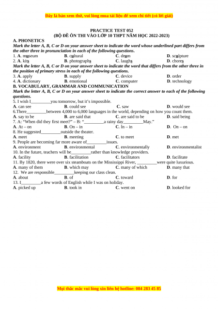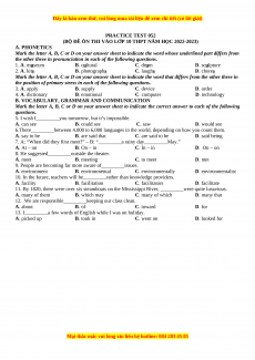 (BỘ ĐỀ ÔN THI VÀO LỚP 10 THPT NĂM HỌC 2022-2023) A. PHONETICS