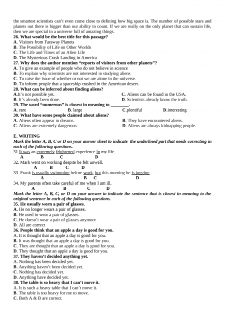 28. What can be inferred about finding aliens? A.It’s not possible yet.