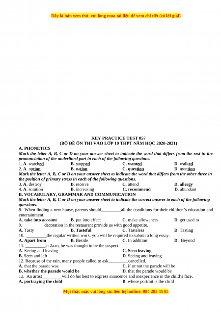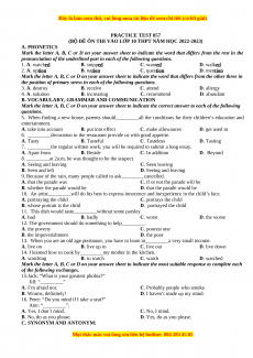 (BỘ ĐỀ ÔN THI VÀO LỚP 10 THPT NĂM HỌC 2022-2023) A. PHONETICS