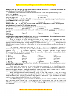 Read the followingpassage and mark the letter A, B, C or D on your answer sheet to indicate the correct