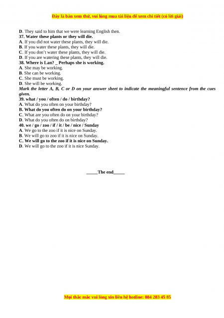 Mark the letter A, B, C or D on your answer sheet to indicate the meaningful sentence from the cues given.