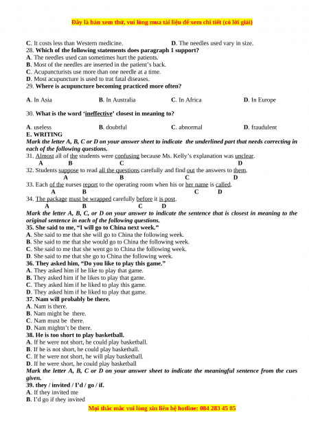 31. Almost all of the students were confusing because Ms. Kelly’s explanation was unclear. A B C D