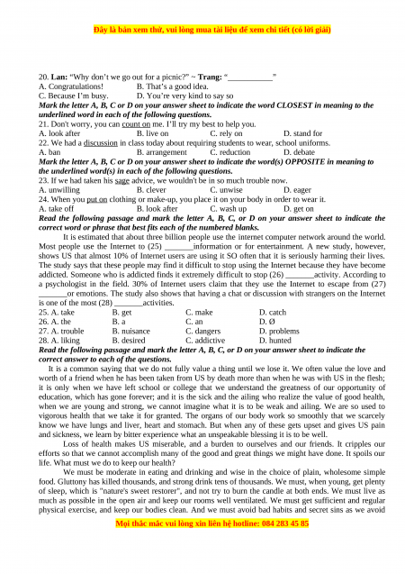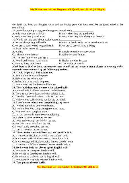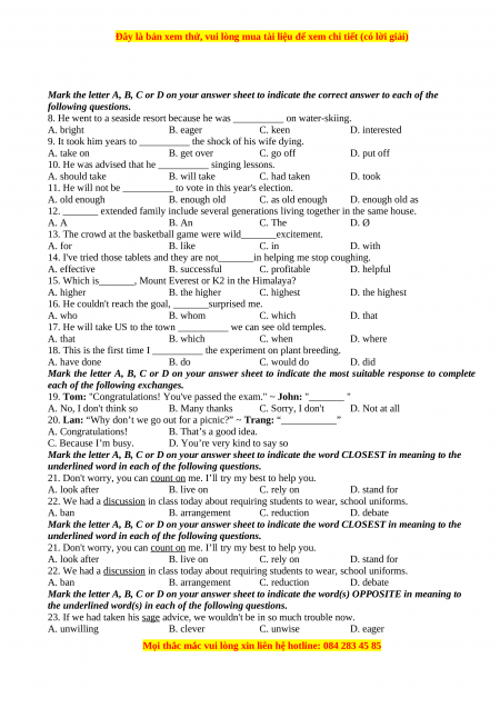 Đây là bản xem thử, vui lòng mua tài liệu để xem chi tiết (có lời giải)