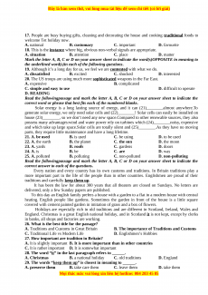 Mark the letter A, B, C or D on your answer sheet to indicate the most suitable response to complete