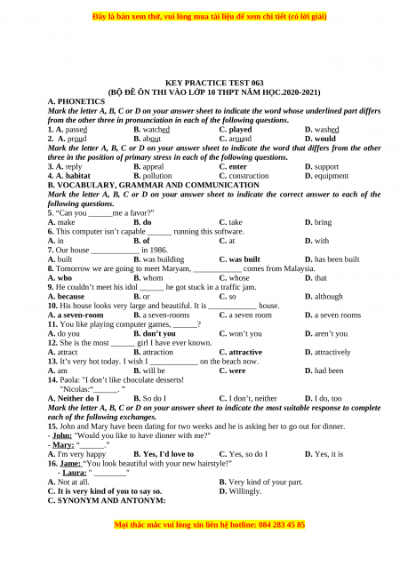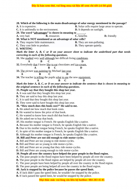 Đây là bản xem thử, vui lòng mua tài liệu để xem chi tiết (có lời giải)