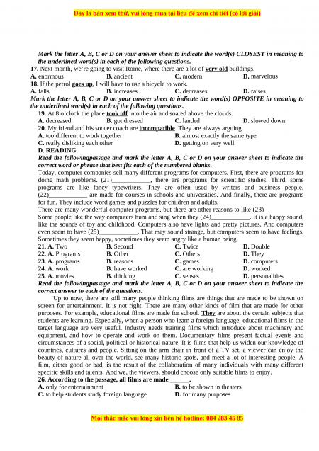 Mark the letter A, B, C or D on your answer sheet to indicate the word(s) CLOSEST in meaning to