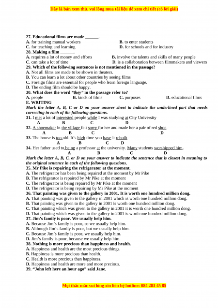 30. What does the word “they” in the passage refer to? A. people B. kinds of films C. purposes D. educational films E. WRITING