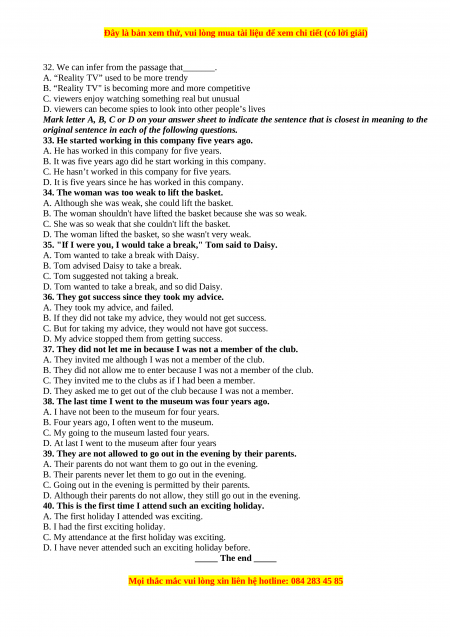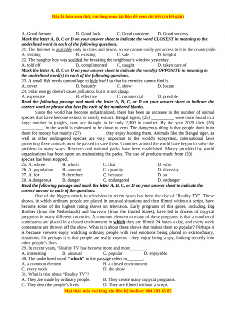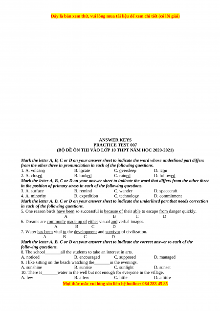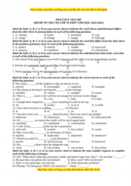 Đây là bản xem thử, vui lòng mua tài liệu để xem chi tiết (có lời giải)