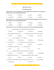 pronunciation in each of the following questions. 3. A. timber B. absorb C. climbing D. suburb 4. A. doubtful B. trouble C. amount D. surround