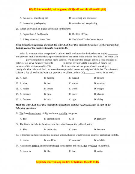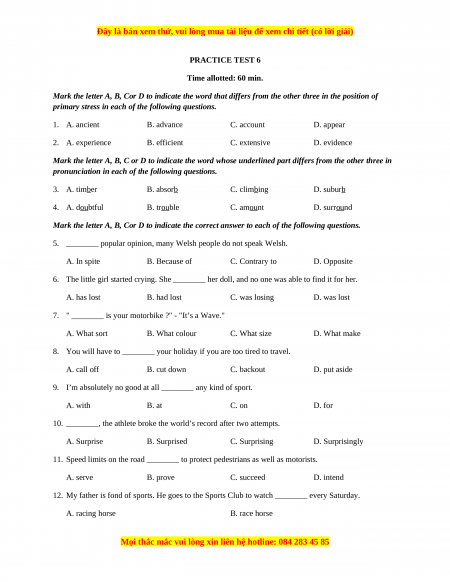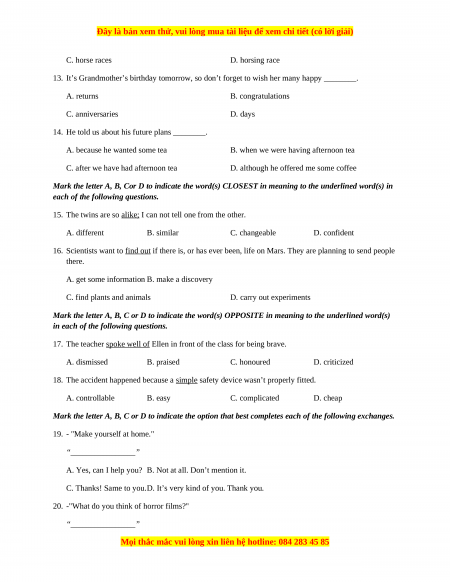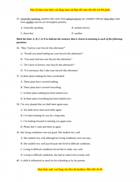 Đây là bản xem thử, vui lòng mua tài liệu để xem chi tiết (có lời giải)