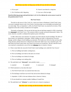 ten stories high. Then, on September 11,2001, the World Trade Center was attacked by terrorists. What